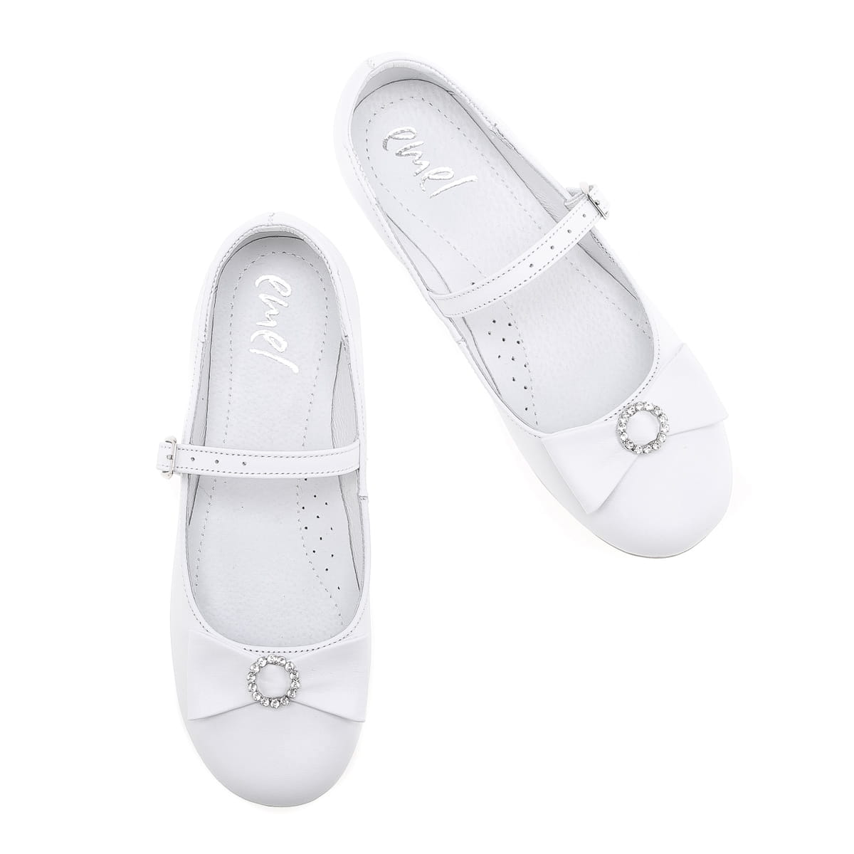 Firma Emel prezentuje piękne buty komunijne dla dziewcząt w kolorze białym, wykonane z wysokiej jakości skóry ekologicznej, prezentują elegancki i delikatny design idealny na tę wyjątkową okazję. Ich subtelna klamerka zapewnia stabilne i bezpieczne zapięcie, gwarantując komfort i pewność podczas uroczystości. Niezwykle dopasowana forma oraz delikatne wykończenie sprawiają, że te buty są nie tylko eleganckie, ale także wygodne dla każdej małej damy w dniu jej pierwszej komunii.