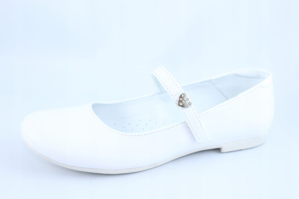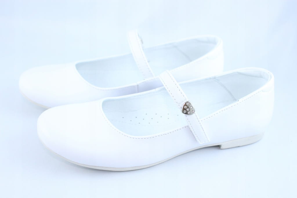 Firma Emel prezentuje piękne buty komunijne dla młodych dam. Uroku dodają serduszka, dzięki którym bucik jest elegancki i z klasą. Wygodne, wzuwne, dobrze trzymają się stóp dzięki paseczkowi z klamerką. Polecane na Komunię i inne uroczystości jak wesele, szkolna gala, wizyta w teatrze czy impreza rodzinna.