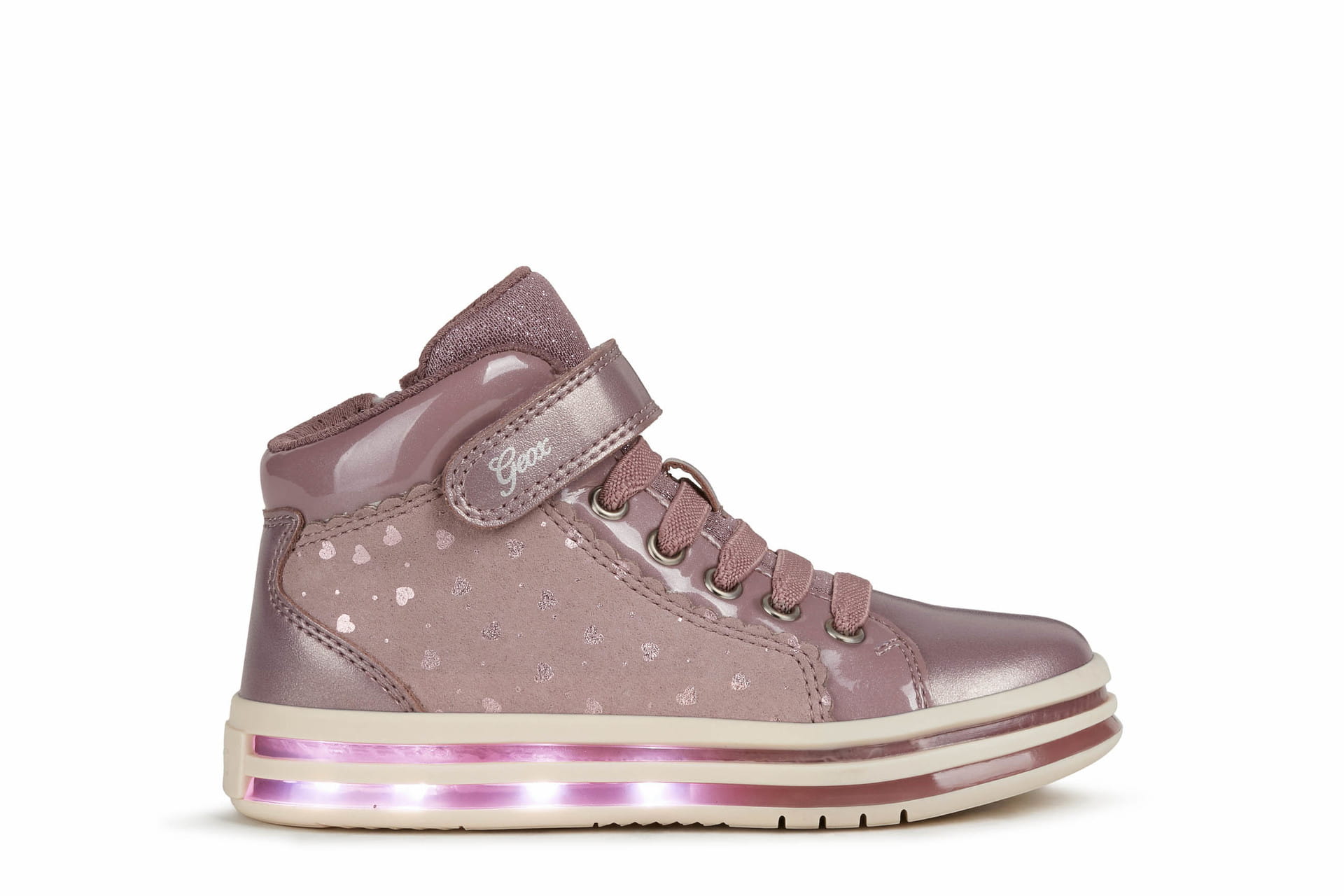 Buty dziecięce Geox to stylowy i funkcjonalny model przeznaczony do codziennego użytkowania. Wyróżniają się wyższą cholewką w różowym kolorze, która została uzupełniona subtelnymi, dziewczęcymi detalami w postaci drobnego wzoru. Połączenie matowych i lakierowanych elementów nadaje obuwiu nowoczesny, estetyczny wygląd, który dobrze komponuje się zarówno z codziennymi, jak i bardziej eleganckimi stylizacjami dziecięcymi.