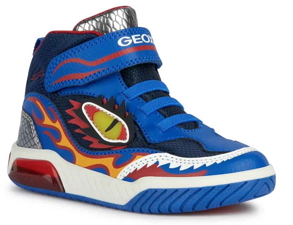Sneakersy dziecięce GEOX to połączenie nowoczesnego stylu, wygody i rozwiązań, które idealnie sprawdzają się w codziennym użytkowaniu przez aktywne dzieci. Model wyróżnia się dynamicznym, sportowym designem w intensywnych odcieniach niebieskiego i czerwieni, wzbogaconym efektownymi detalami graficznymi inspirowanymi światem fantasy, które szczególnie przyciągają uwagę najmłodszych.