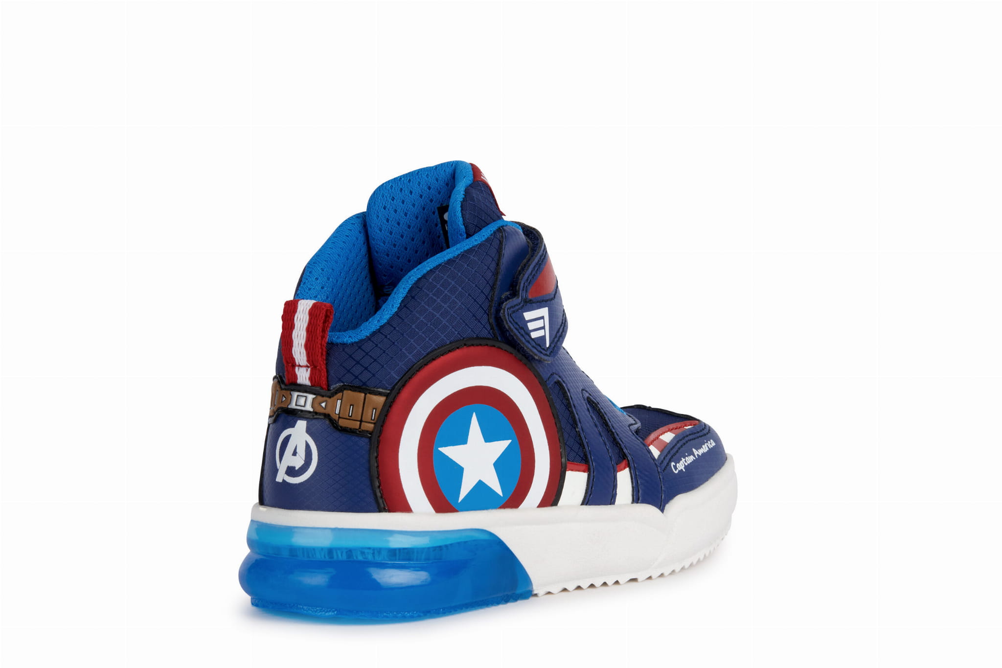 Dziecięce sneakersy GEOX Avengers to wyjątkowe buty stworzone we współpracy marki Geox z uniwersum Marvela, zaprojektowane z myślą o aktywnych dzieciach oraz młodych fanach Avengersów. Charakterystyczny wzór inspirowany postacią Kapitana Ameryki w kolorach granatowym i czerwonym nadaje im wyjątkowego charakteru, który z pewnością spodoba się każdemu chłopcu.