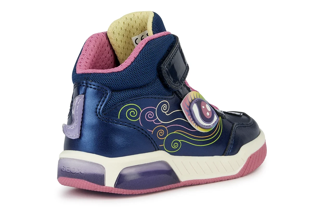 Dziewczęce świecące trzewiki Geox to połączenie wyjątkowego stylu, komfortu i dziecięcej radości. Model zachwyca granatową kolorystyką uzupełnioną wielokolorowymi akcentami, które nadają butom nowoczesny i dziewczęcy charakter, oraz efektownymi detalami widocznymi na cholewce. Wbudowane w podeszwę diody LED zapalają się podczas chodzenia, dodając butom dynamicznego wyglądu i sprawiając, że każdy krok staje się świetną zabawą. Trzewiki wyposażone są w praktyczne zapięcie na rzep oraz elastyczne sznurowanie, co ułatwia samodzielne zakładanie i zapewnia dobre dopasowanie do stopy. Lekka, elastyczna i antypoślizgowa podeszwa gwarantuje stabilność i wygodę podczas codziennych aktywności, a charakterystyczna dla marki Geox oddychająca konstrukcja wspiera komfort noszenia przez cały dzień. To idealny wybór dla dziewczynki na spacery, do przedszkola lub szkoły, który łączy funkcjonalność z modnym, nowoczesnym wyglądem.