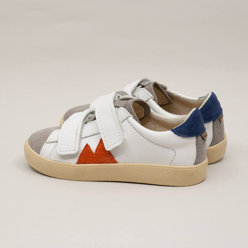 Wierzch: skóra licowa w kolorze białym z kolorowymi welurowymi dodatkami