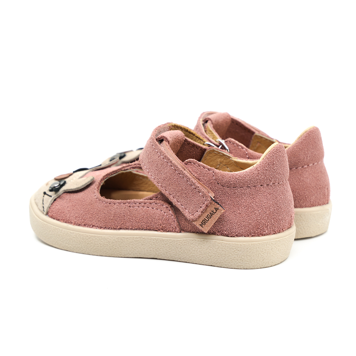 Balerinki zapinane na rzep umożliwiają szybkie i łatwe zakładanie, a usztywniona pięta oraz anatomicznie wyprofilowana wkładka skórzana wykonana z juchtu – ekologicznej skóry bydlęcej wyprawianej środkami roślinnymi – zapewniają optymalne wsparcie i wygodę. Te ręcznie wykonane buciki zachwycają pięknym kolorem oraz uroczym motywem króliczków, który skradnie serca małych miłośniczek zwierzaków.