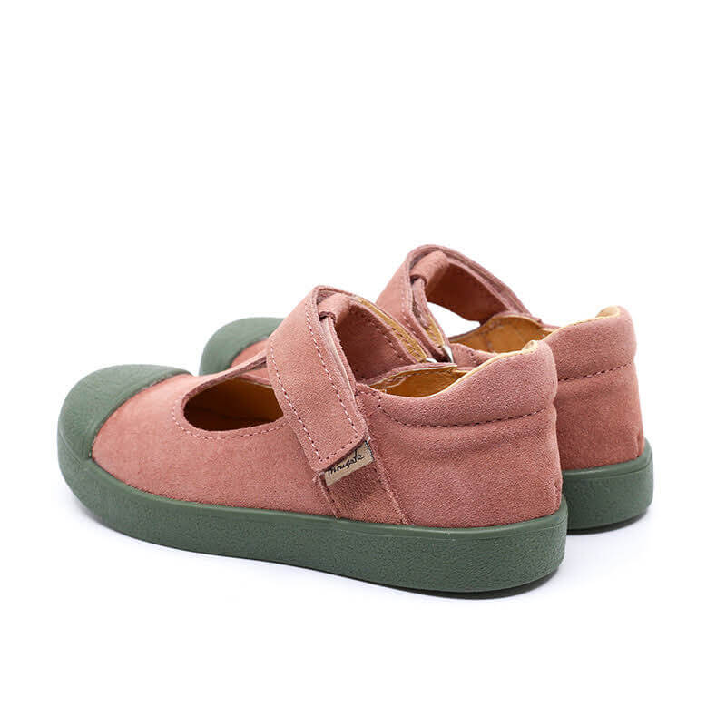 Mrugała Tuli Rosa balerinki skórzane z gumowym noskiem i kolorową podeszwą.